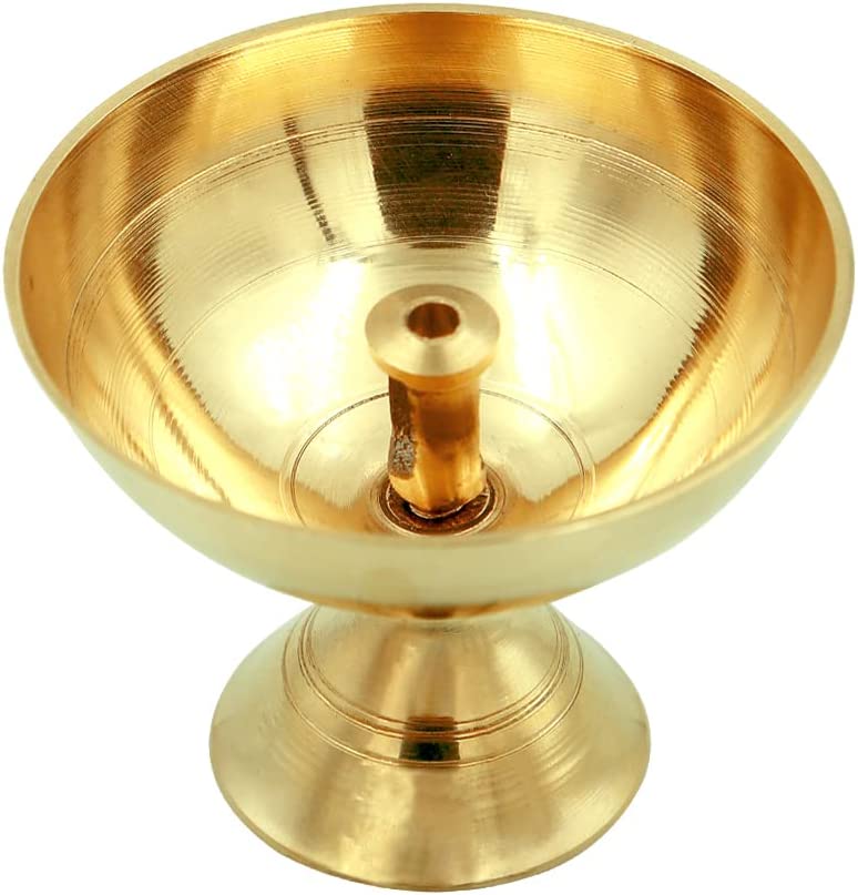Crafts of India : Pure Brass Akhand Diya Deepak, Puja Dia, Oil Lamp, Traditional Design for Pooja Room, Home Décor, Diwali/Navratri/Festival Gift