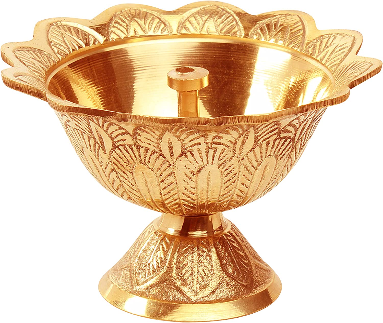 Crafts of India : Pure Brass Devdas Akhand Diya Deepak, Puja Dia, Oil Lamp, Traditional Design for Pooja Room, Home Décor, Diwali/Navratri/Festival Gift